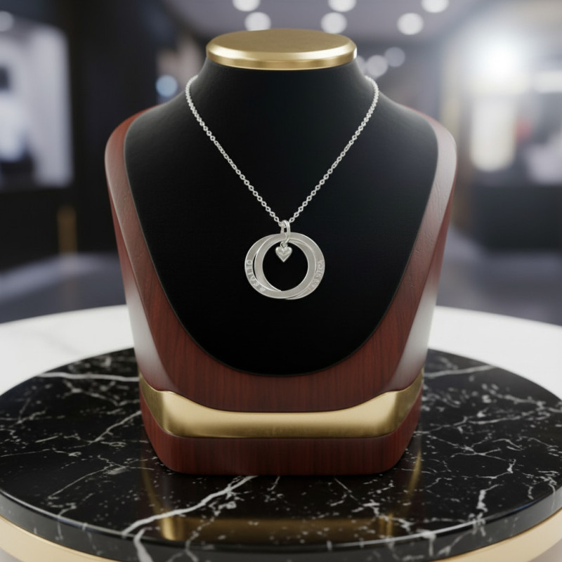 Always In My Heart Personalised Necklace, Russian 2 Ring Name Necklace, Gifts For Her, Gift For Mum, Gifts For Mom, Family Names Necklace