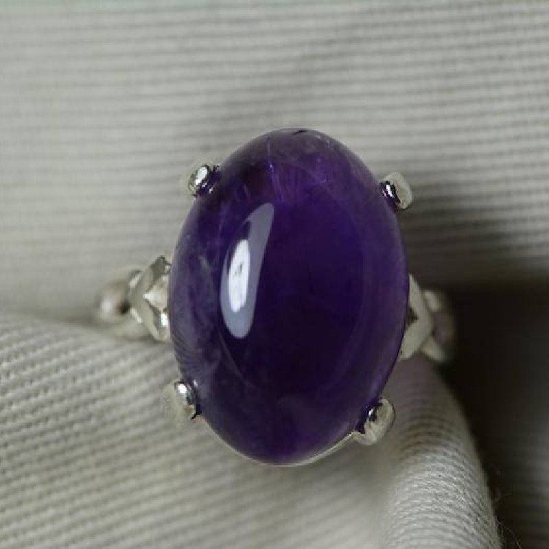 Amethyst Ring, Certified 12.56 Carat Amethyst Cabochon Appraised at 500.00 Oval Cab, Sterling Silver, Natural Amethyst Jewellery