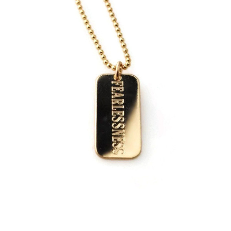 FEARLESSNESS custom engraved horizontal tag pendant necklace in 14k gold fill or sterling silver - Personalized inspirational survivor charm