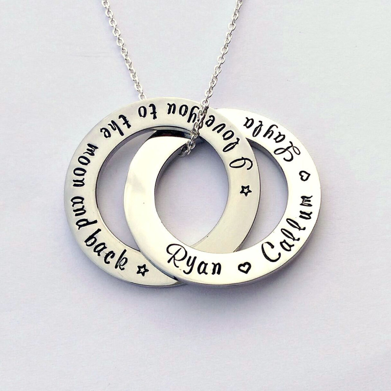 I love you to the moon and back Personalised necklace - circle linked necklace - name necklace - russian wedding ring - gift for her
