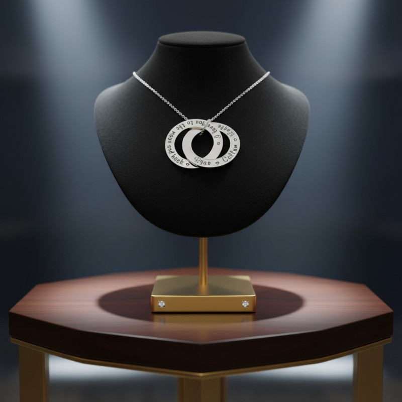 Always In My Heart Personalised Necklace, Russian 2 Ring Name Necklace, Gifts For Her, Gift For Mum, Gifts For Mom, Family Names Necklace